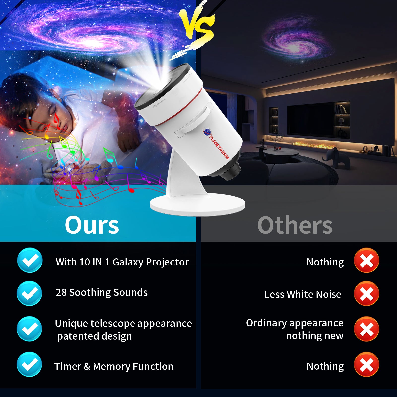 Galaxy Projector,upgraded 4k Hd Star Projector Lens 10 Realistic Nebula Scenarios Room Lights,timer Off - White